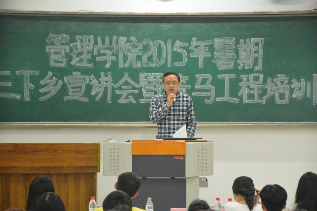 “扬青春志,系农村情,走实践路,筑中国梦”,管理学院2015年“三下乡”暑期社会实践工作圆满落幕,获得重庆工商大学2015年大学生暑期“三下乡”社会实践活动先进集体称号。10月24日下午15:00,管理学院2015年暑期“三下乡”宣讲会暨青马工程培训大会于主校博智楼07121举行。出席本次活动的有管理学院党总支尹建平副书记、管理学院学团办主任卓志宏老师、管理学院分团委书记何祖润老师。此外,管理学院分团委学生会干部干事、“爱心桥”义工志愿者协会干部干事、管理学院2013、2014级各班级代表以及各党员服务站及楼栋代表也参加了本次会议。