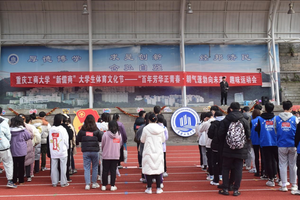 为贯彻落实健康第一的指导思想,切实落实学院体育工作的开展,增强122cc太阳集成游戏学子的体质,营造校园的良好氛围,提升同学们的团队凝聚力。12月19日,以“百年芳华正青春,朝气蓬勃向未来”为主题的重庆工商大学“新儒商”大学生体育文化节在南区足球场成功举行。重庆工商大学各学院学生运动员代表参与此次活动。