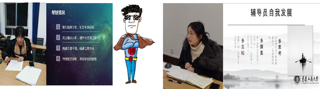 接下来进入会议第二阶段,各位辅导员按照顺序依次进行年终述职汇报。主要就负责的专项工作和班级工作开展情况、分享经验、取得成绩、存在的不足、下一步工作的打算进行了汇报交流。随后大家就汇报交流中的特色做法、经验教训展开讨论,总结了5项在今后工作中可以推广借鉴的工作方法。最后彭勇同志对学院学工队伍在学院合并调整背景下的辛勤付出、取得的优异成绩作出了充分肯定,要求学工队伍在今后工作开展中要进一步增强自信心,注重执行力,提高效率,高质量的做好学生工作。