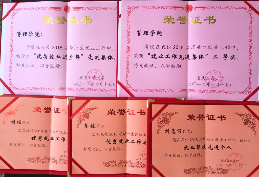 在2018年10月17日举行的2018届本科招生就业总结表彰会上,管理学院获得了就业工作先进集体二等奖、优质就业进步奖的荣誉,学院刘惠君老师获就业帮扶先进个人称号,辅导员张檬、刘榴获就业工作先进个人称号。