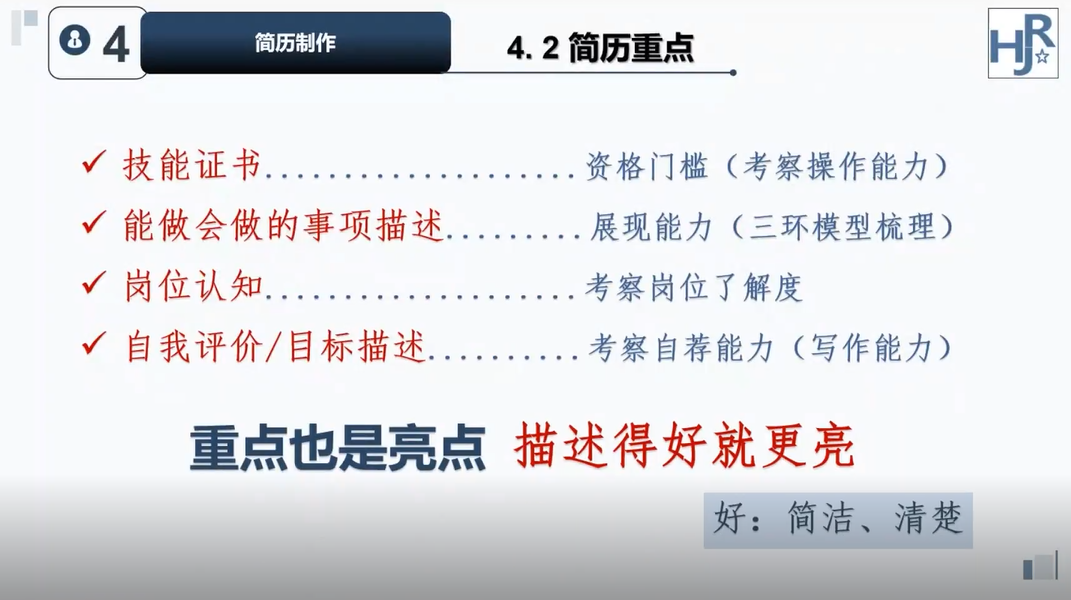 最后,何大均老师与参会同学从企业HR的视角出发,在简历制作方面进行了实例分析,明确了简历结构,强调了简历重点即亮点,描述的清楚、简洁就会更具吸引力。