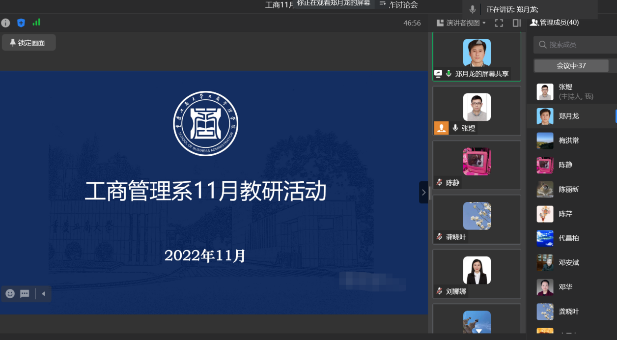 11月23日晚,工商系全体教师通过企业微信会议,开展了工商管理系11月份的教研活动,本次教研活动由工商管理系副主任张煜博士主持。