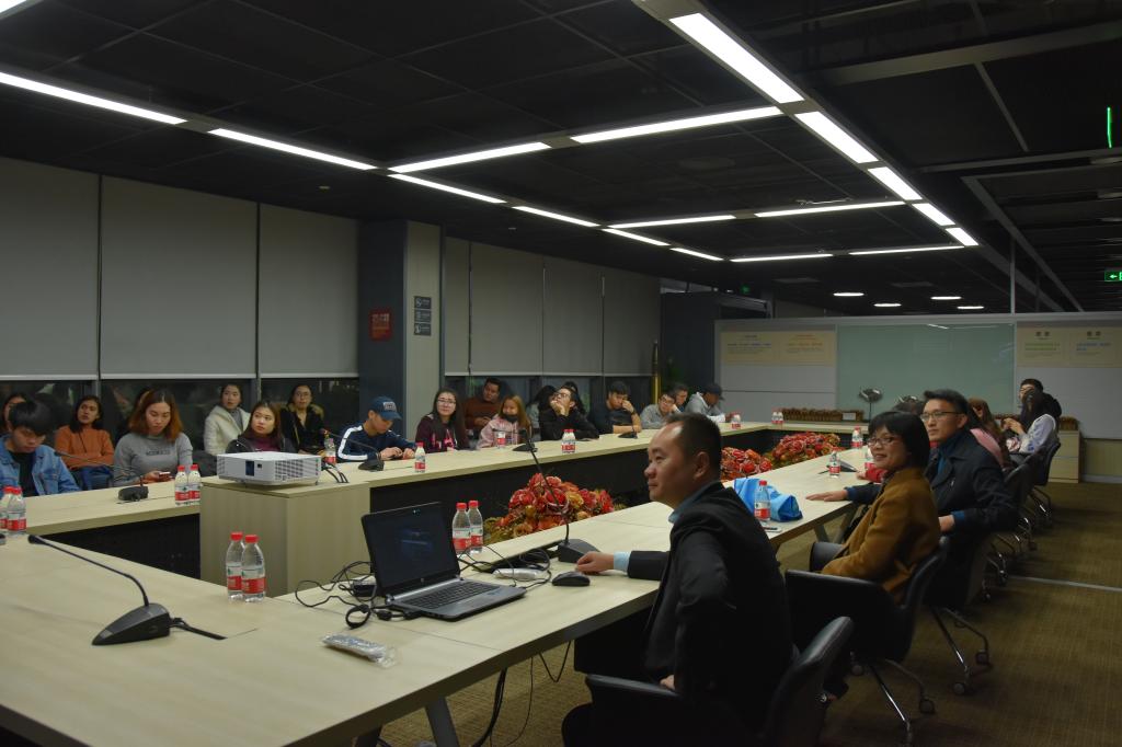 最后各位同学在毕业学长的引导下来到宗申集团会议室,进入提问讨论环节。同学们就宗申集团的管理和生产方面用中英文提出自己的问题,学长代表公司一一进行解答,从解答中获取的不只是宗申集团的管理,也延伸到整个产业的管理知识。