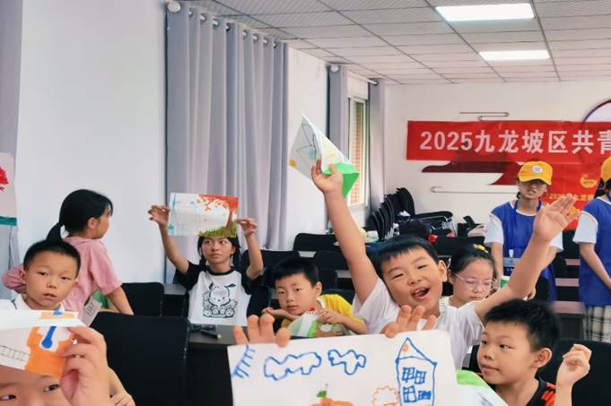 活动伊始,研行团成员首先以生动的PPT讲解AI技术的应用场景,并通过图片与短视频,让抽象的技术概念变得直观可感,引导青少年认识到科技在生活中的实用价值。随后的“趣味猜谜”游戏环节成为知识互动的纽带,青少年通过抢答加深对科技产品的理解,在轻松氛围中巩固所学的科技知识。而后,在“未来科技创想屋”环节,青少年们拿起画笔,勾勒出“会讲故事的垃圾桶”“VR游览九龙坡”等创意作品,其中融入了他们对生活的观察与思考。这一过程既锻炼了青少年的创新思维,也让他们对社区发展产生了更强的参与意识与责任感。最后,“自制投影仪”手工环节让实践验证创意,青少年们在研行团成员的带领下组装简易投影仪,感受科技实践的乐趣,动手实践让科技知识变得生动具体,也为整个活动画上圆满的句号。