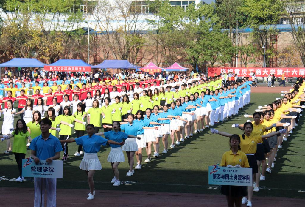 四月阳洒南山下,青春洋溢工商里。4月17日8:30,重庆工商大学第十六届田径运动会在南岸校区南操场隆重开幕。