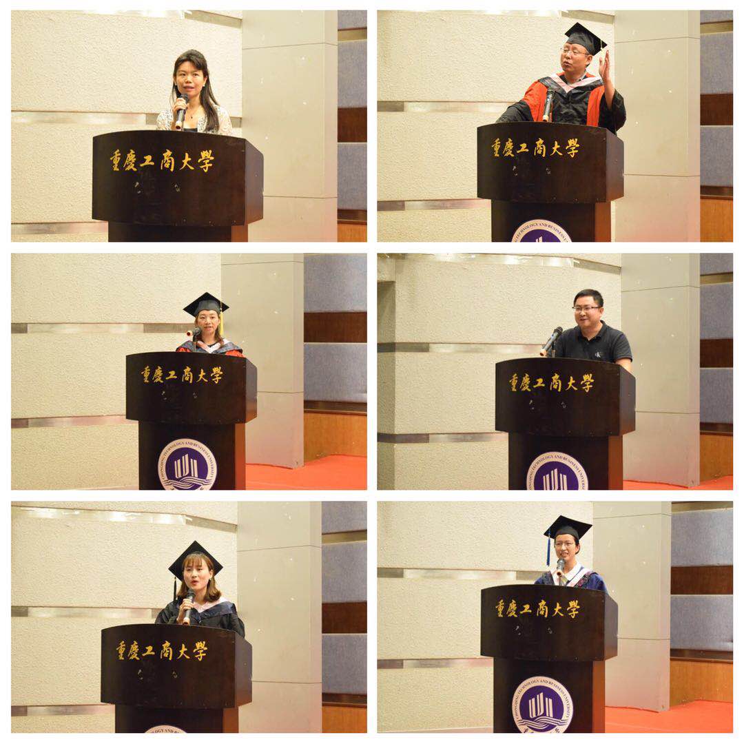 优秀校友2003级人资专业学生赵川先生发言,他简单回顾了自己的成长历程,建议学弟学妹们要常怀感恩之心,不忘初心方得始终。硕士毕业生代表彭小平发言,在离别之际感谢管理学院老师们的精心栽培,祝愿学院未来发展更加美好。本科毕业生代表刘开平在发言中回忆了四年校园生活的点点滴滴,深切表达了自己对母校的不舍之情,并用马丁·路德·金的名言“我有一个梦想”来鼓励大家勇敢逐梦。