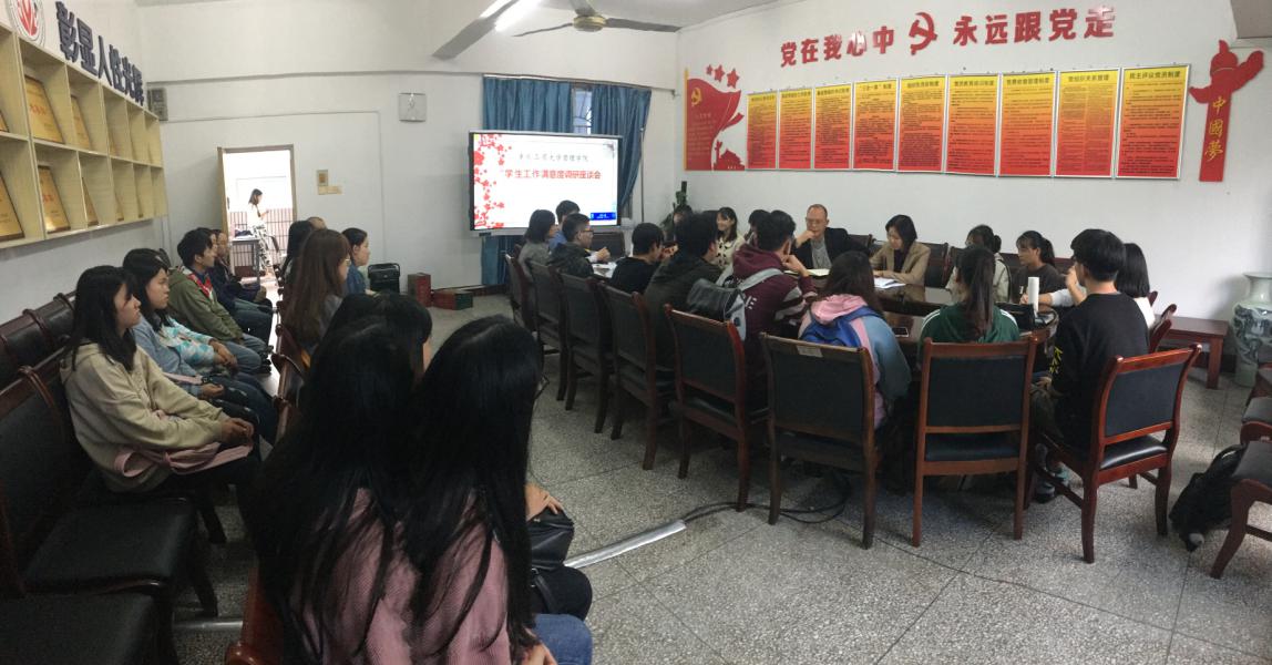 根据管理学院分党委安排,管理学院于2019年10月22日中午12:30在明德楼3021会议室召开了管理学院学生意见反馈座谈会。管理学院分党委书记、副院长王建明,分党委副书记、纪委书记王静、学生资助工作负责人聂树平老师以及来自学院2018级工程、工商两个专业共五个班的学生代表参加了座谈会。