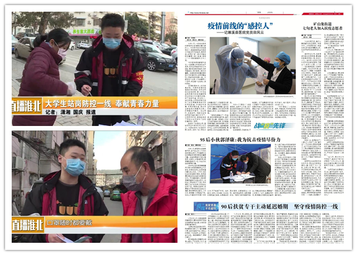 今年1月,新冠肺炎疫情迅速席卷全国,在这场抗击新冠肺炎疫情的全民阻击战中,许多人都在为抗击疫情而默默奉献。在抗击疫情最前线,有“白衣战士”们坚定的身影;在防控疫情的大后方中,有社区党员干部和志愿者们守护着群众。在这些人中,管理学院17级信息管理与信息二班的郭泽康同学主动申请成为社区志愿者,用抗击疫情的实际行动诠释新时代青年大学生坚定不移的理想信念和敢于担当的大无畏精神。郭泽康同学脚踏实地的工作态度、谨慎细致的工作方式、高效无误的工作成绩赢得了当地群众和领导的肯定和赞赏,他的先进事迹被淮北电视台和淮北日报等媒体争相报道,成为当地青年人学习的榜样。