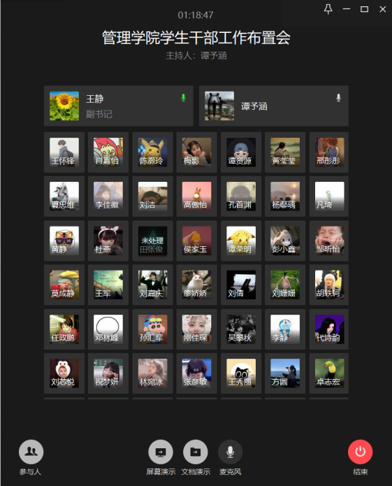 此次会议,充分发挥了互联网信息共享、方便快捷的优势,有效创新了学院学生工作思路,转变了学生工作模式。希望在全院师生的共同努力下,能够极大推动线上学生工作的顺利开展,为今后完善线上线下相结合的学生工作模式打下坚实基础。