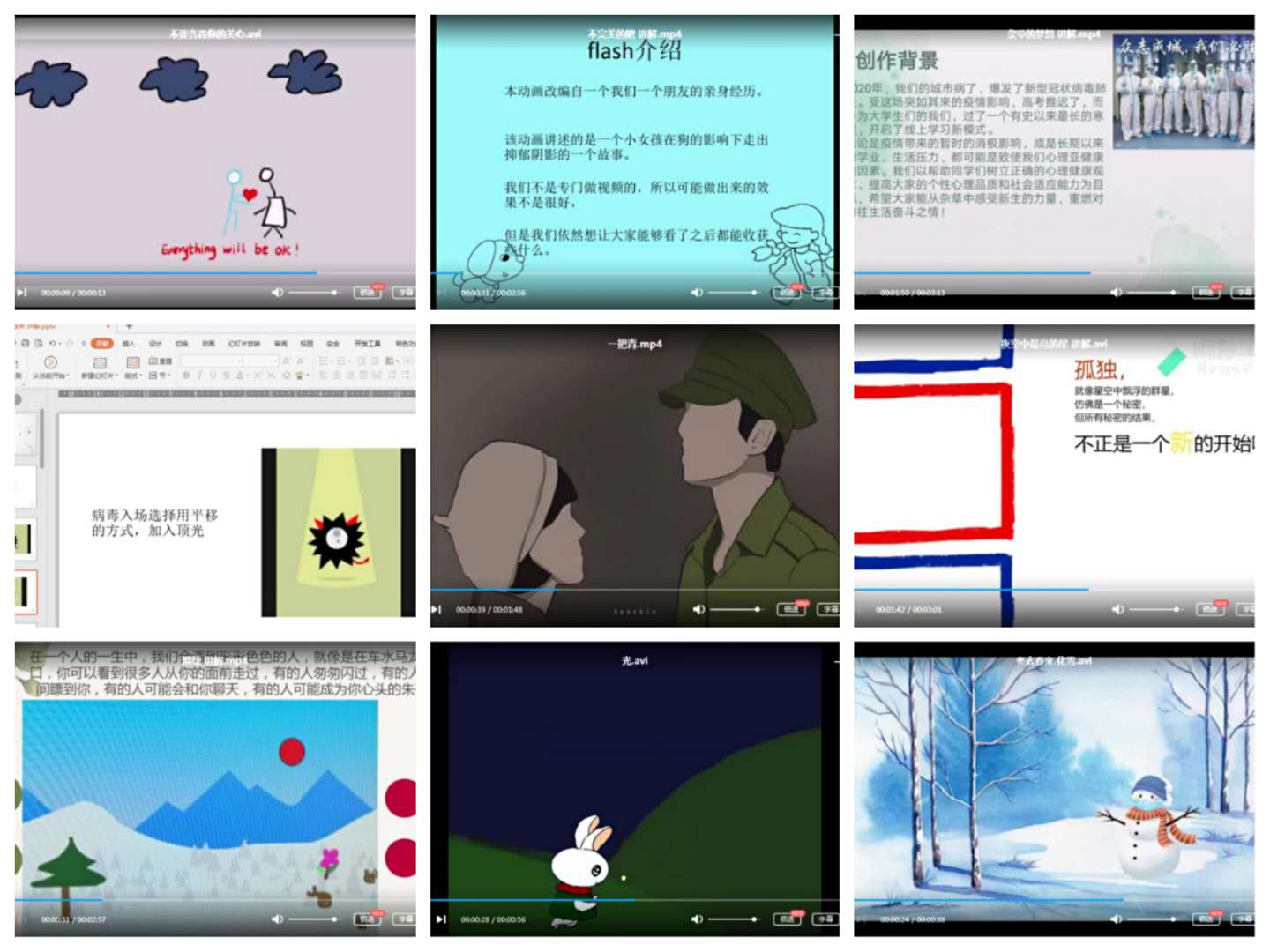 本次心理Flash视频制作活动以“心印暖阳 ‘帧’显阳光”为主题,面向全校学生广泛征集作品,受到了各学院学生的广泛关注,大家纷纷提交精心制作的作品,积极响应参与活动。经过激烈的角逐,《冬去春来》《光》《一把青》等十个稿件脱颖而出,赢得了难能可贵的决赛机会。在整合初赛得分、评委打分及线上投票多个指标过后,作品《冬去春来》最终以77.53的分数夺魁。该作品展示了疫情期间居家生活由冬天到春天的转变,表达了对宅家生活疫情阴霾之下冬日的展望与春天的绽放。作品《不完美的她》《杂草的梦想》分别以75.80、74.33的分数位列第二、第三。而《光》《一把青》《冬去春来·化雪》获得了三等奖。至此,经历了1个月的重庆工商大学第十六届“心印暖阳 “帧”显阳光”心理flash视频制作比赛活动圆满结束。