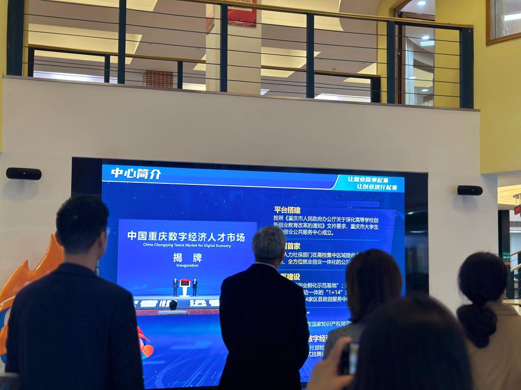 4月7日,李国军一行首先参观重庆大学学生交叉创新中心、重庆市大学生就业创业公共服务中心和鹰谷睿科(重庆)数据科技有限公司。在校企座谈会上,重庆市人才交流中心大学生工作部部长梁晶对李国军一行表示热烈欢迎,介绍了市人才交流中心在大学生职业培训、就业帮扶、创新创业等方面的政策,表达了希望与学校在人才培养、学生就业等方面加强合作的愿望。
