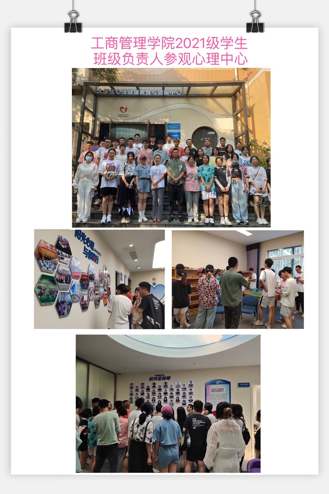2021级市场营销五班的班级负责人王慧玲表示:“通过这次参观体验活动,我首先知道了南岸校区心理中心的位置,也再次感受南岸校区心理中心软硬件设施,了解了咨询预约途径。也通过这次契机,我会在班级进一步宣传普及心理健康知识,利用好学院和心理中心提供的心理资源,帮助班级同学们更好地应对学习、生活中的各种压力。”